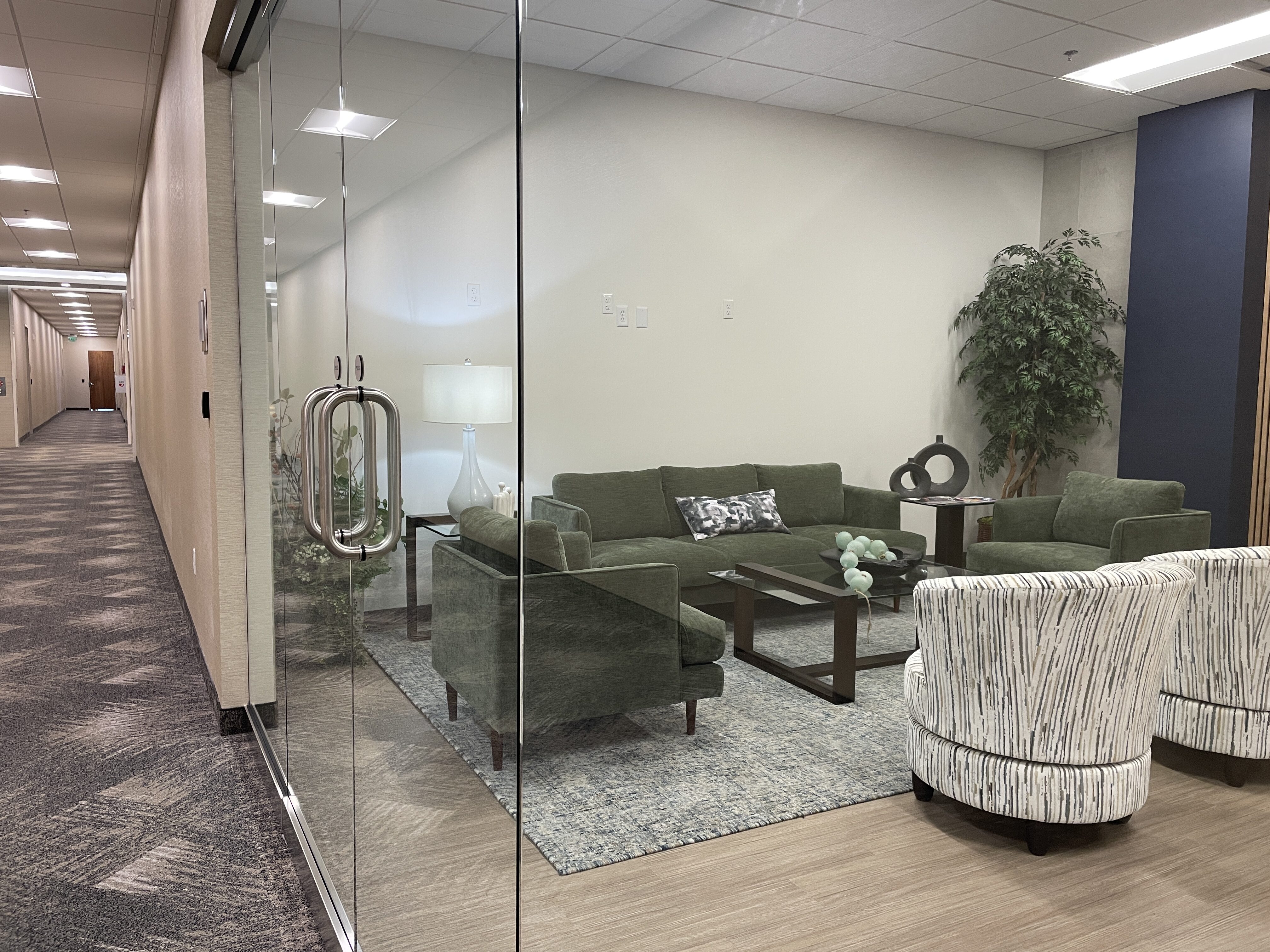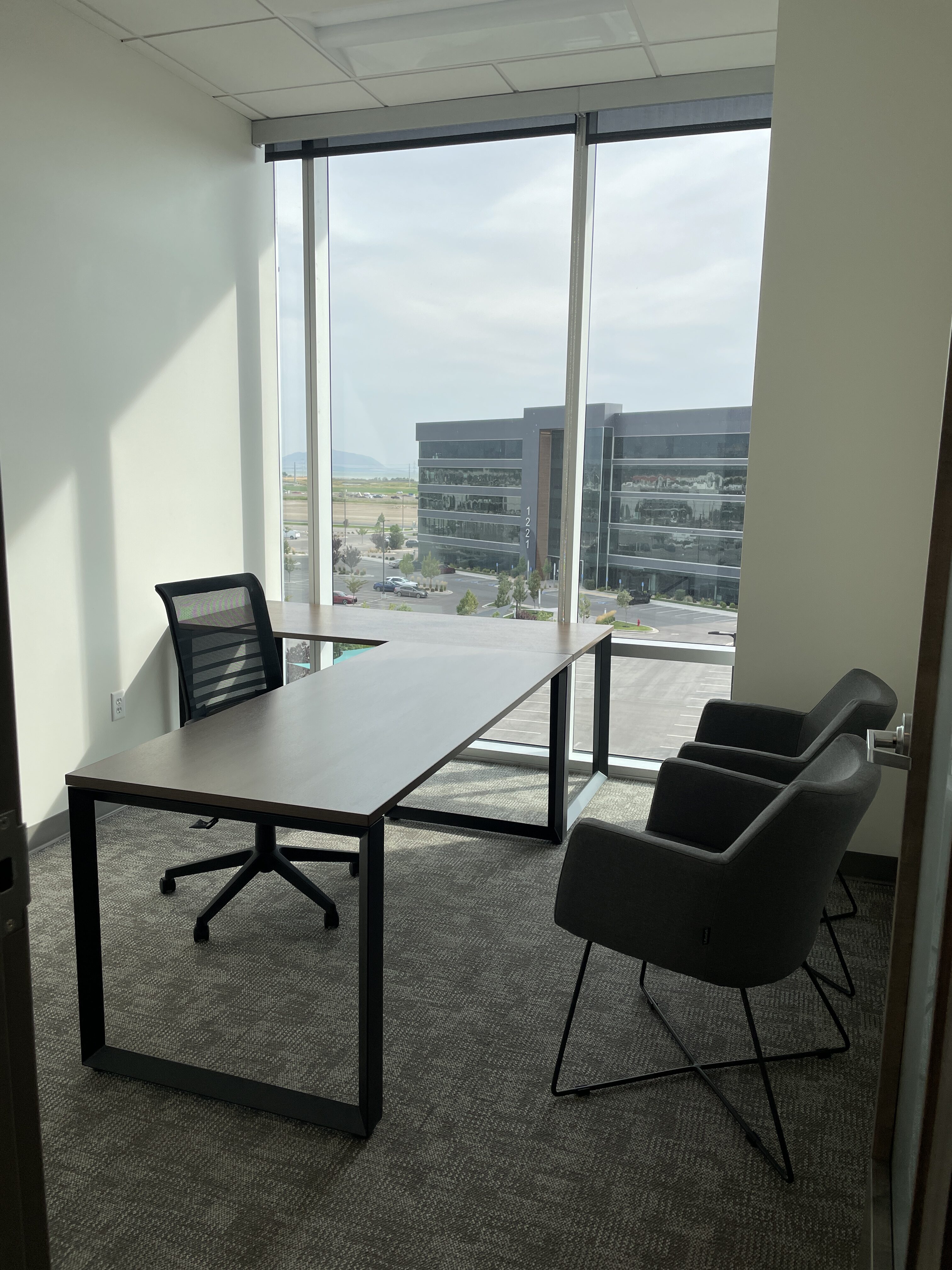 Pando Club’s office Suite 460 is located on the north west corner of the fourth floor of the building identified as “Valley Grove I” located at 1064 S North County Boulevard.  With floor-to-ceiling windows with beautiful views the Pando Club Suite 460 includes a welcoming entrance, nine lockable private offices, a future podcast and video production room, and a large conference room adjacent to a kitchen.  Each Private Office is move-in ready with a large desk and office chairs.